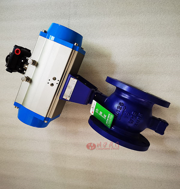 CHVQ640H、CHVQ640F法兰式气动V型球阀(Pneumatic flange type V ball valve)是一种由V形切口球面阀芯在小开度范围内贴着密封面旋转而控制流体的角行程球阀,多用于对介质流量的调节场合,也可以用在开关场合。
